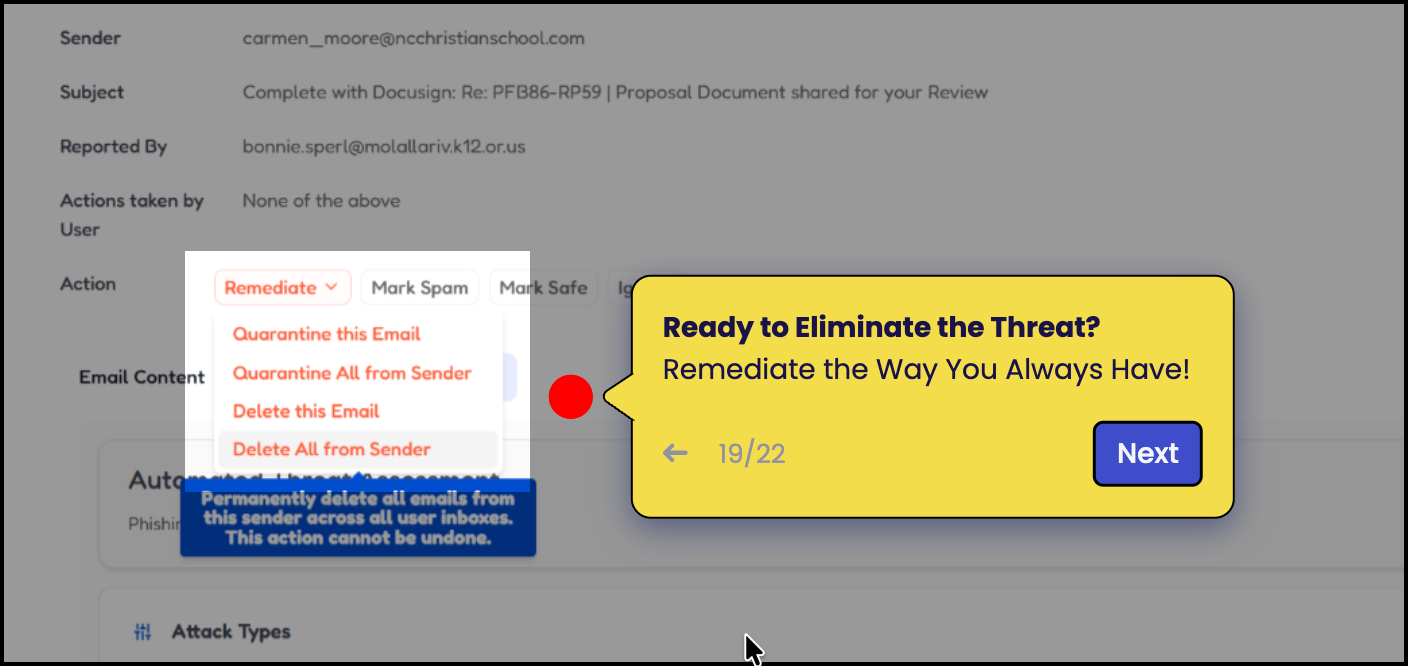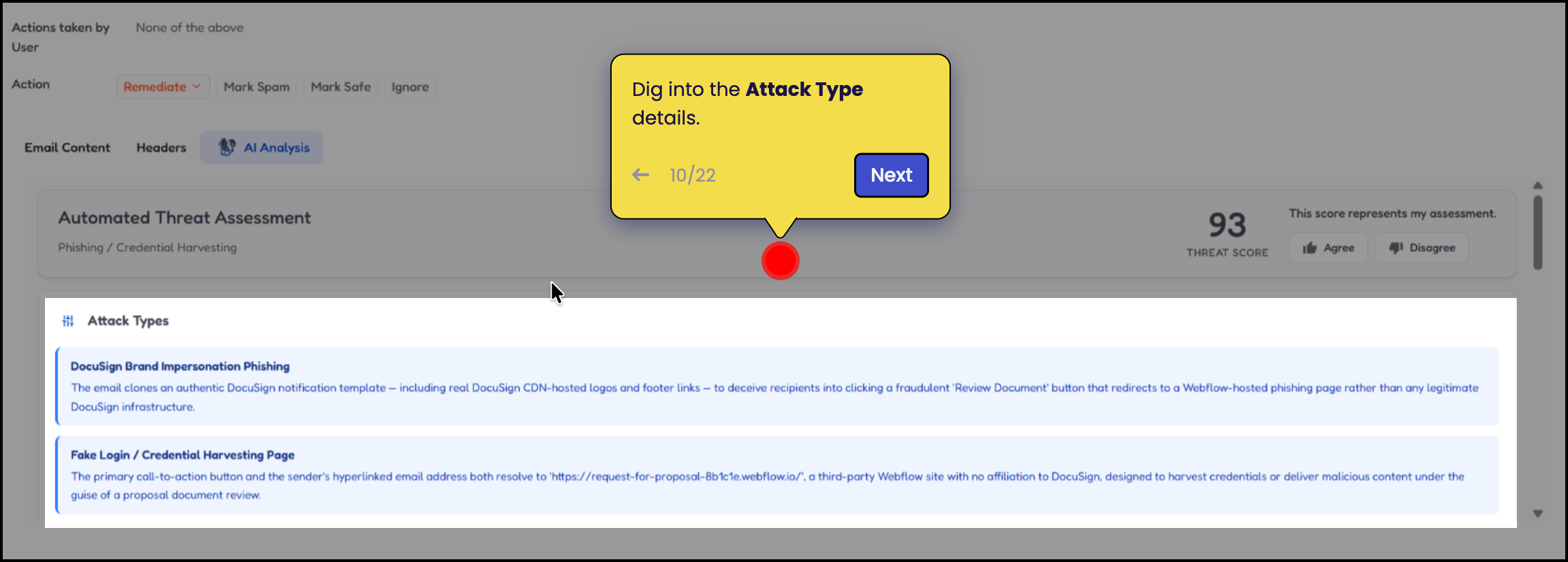 By highlighting higher-risk reported threats, ATT helps teams focus their attention where it matters most.