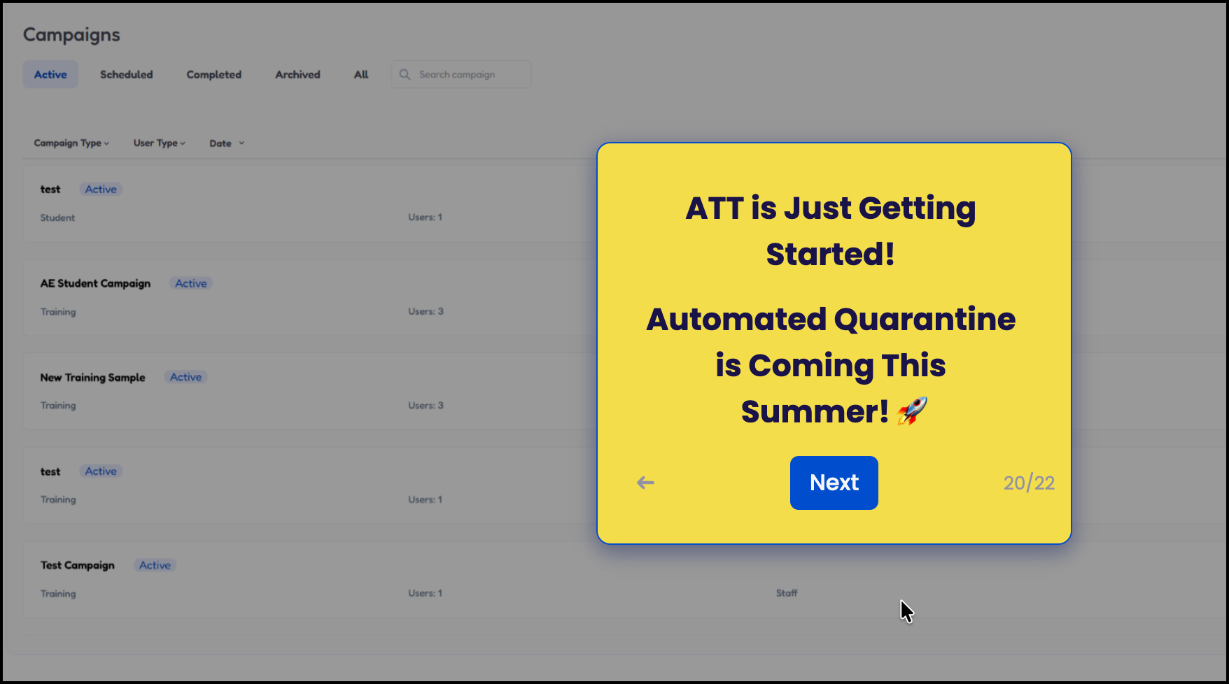 After July 1, ATT will become available as an add-on product within CyberNut. Organizations interested in continuing to use ATT after the beta period can reach out to their Customer Success lead for additional information and pricing.