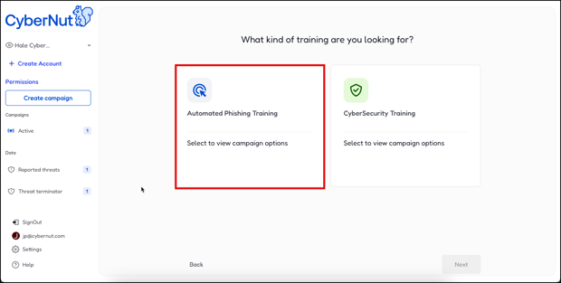 2. Click Automated Phishing Training.