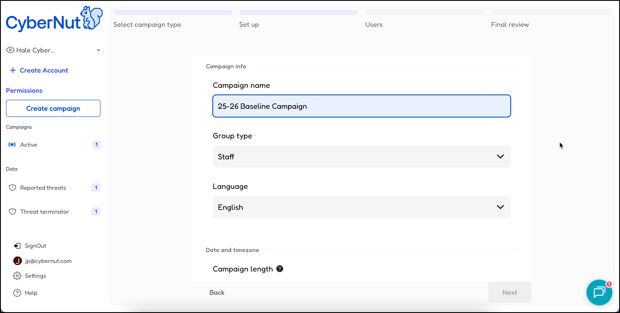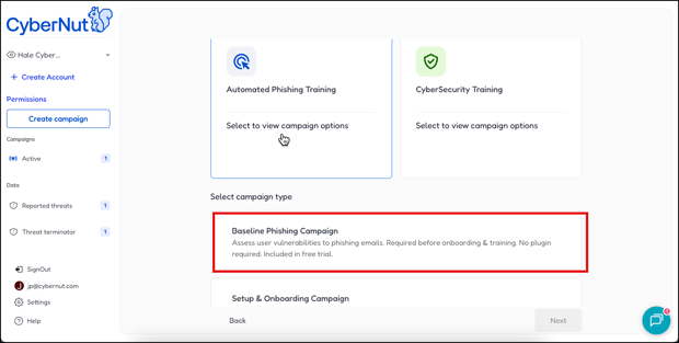 This guide will show you how to create a Baseline Campaign in the CyberNut Admin Portal.