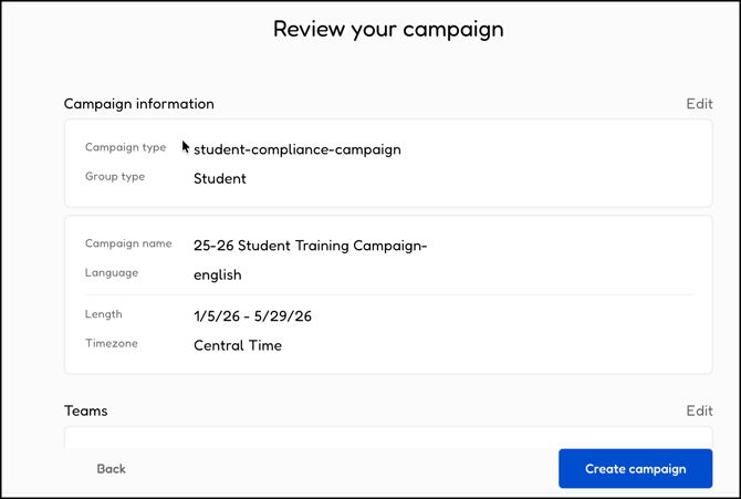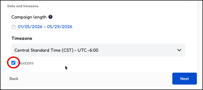 - Scroll down and click Start and select the start and end dates of the campaign.