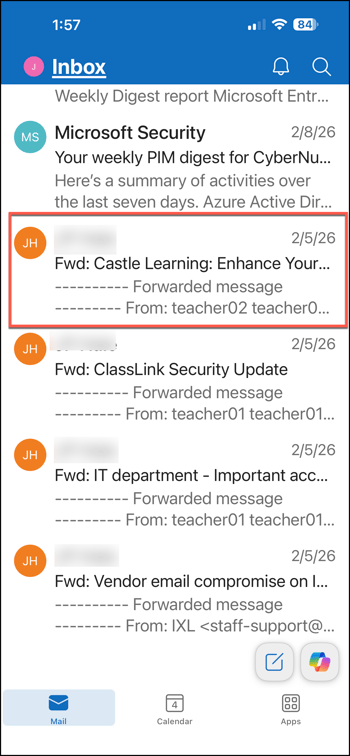 - Select a suspicious email.