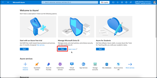 - Log in to Microsoft Azure at https://portal.azure.com/.