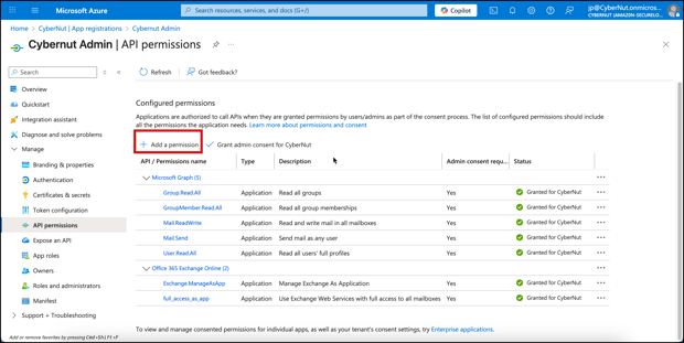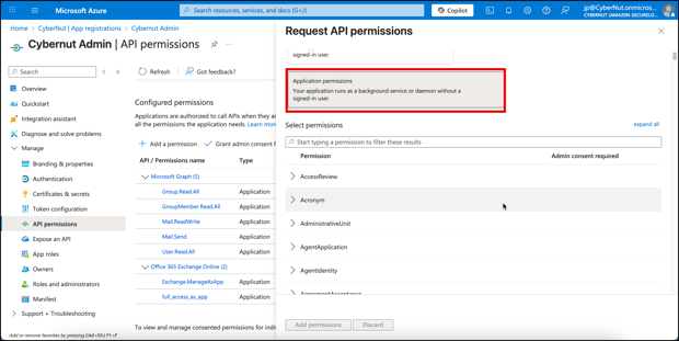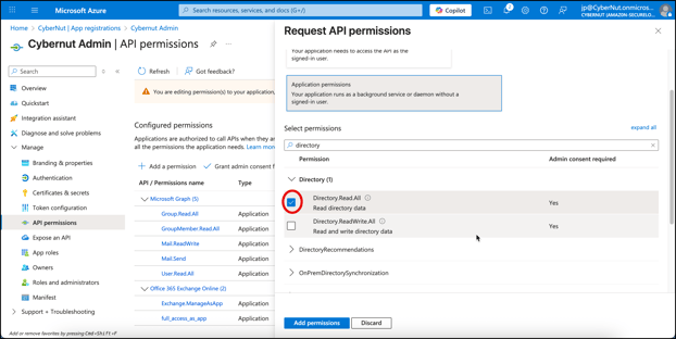 - Search for directory and select Directory.Read.All. Then click Add permissions.