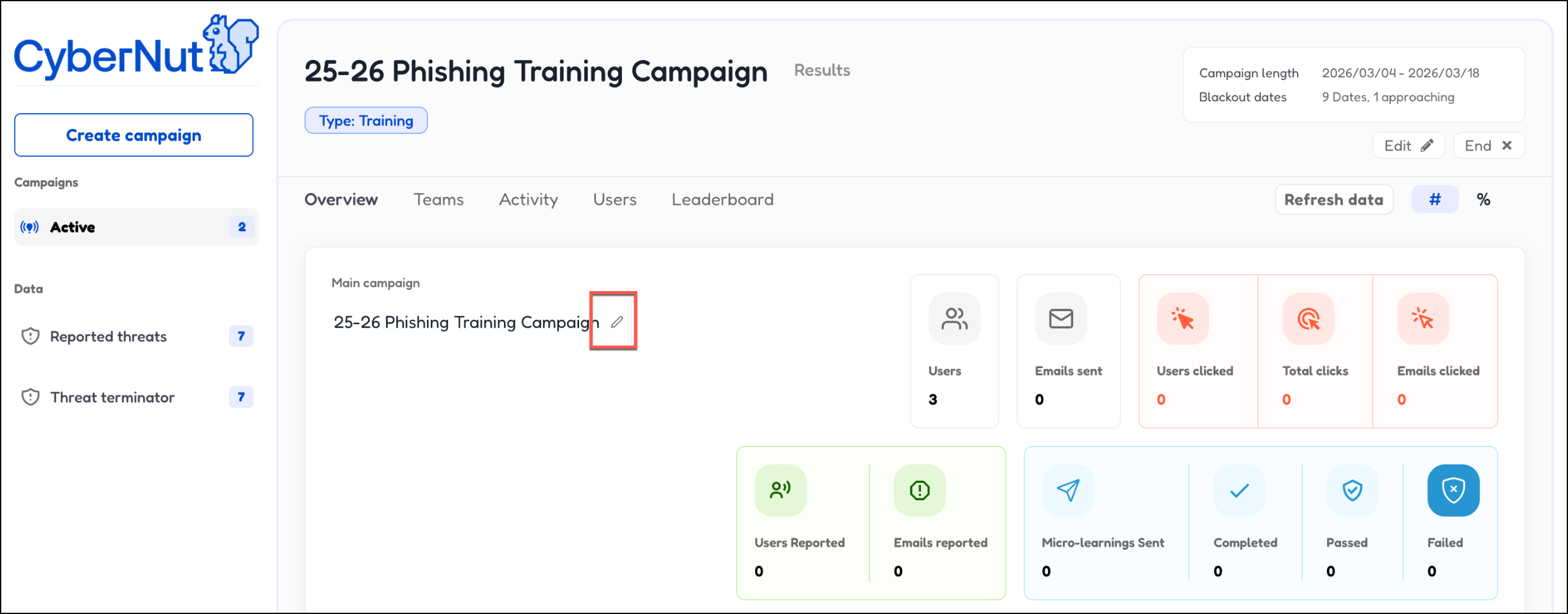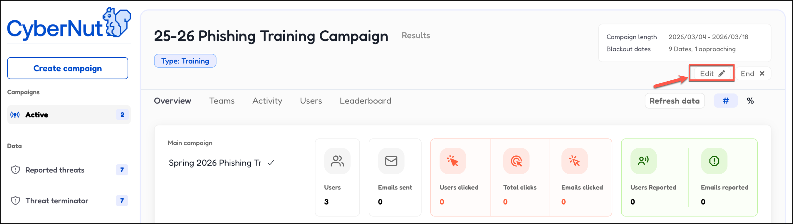 In this article you will learn to edit an active phishing training campaign.