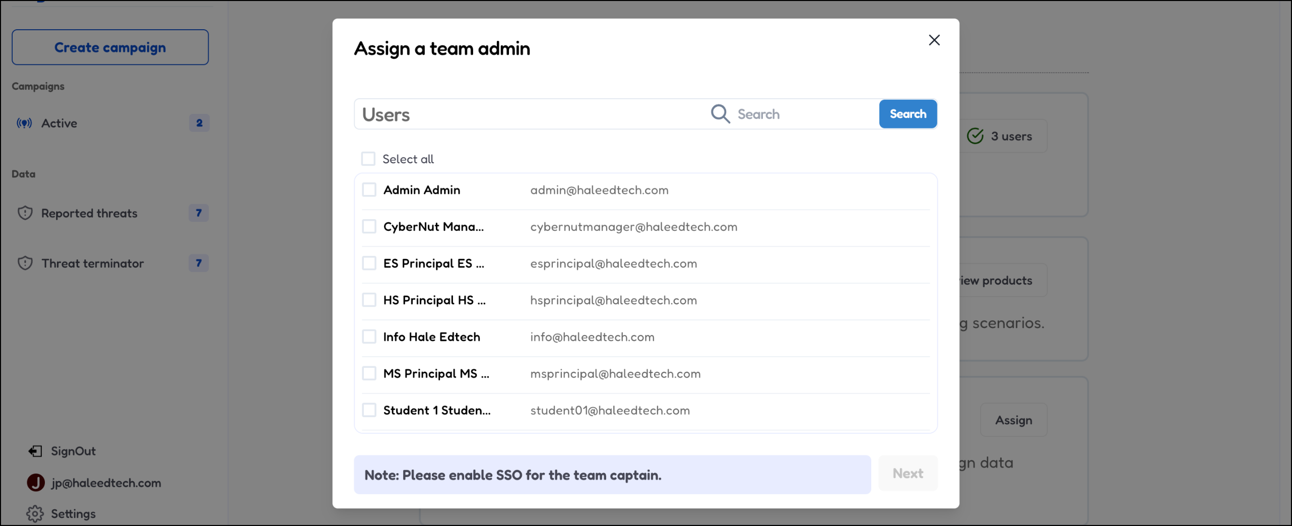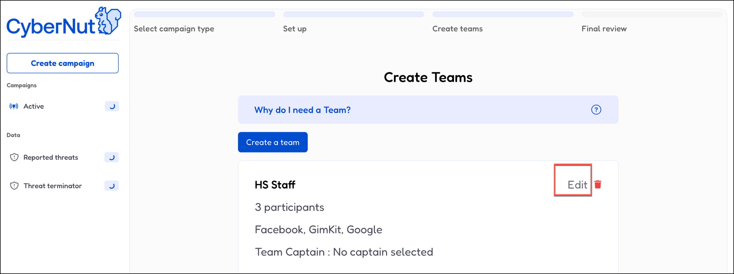 15. Click Assign to pick a Team Captain.