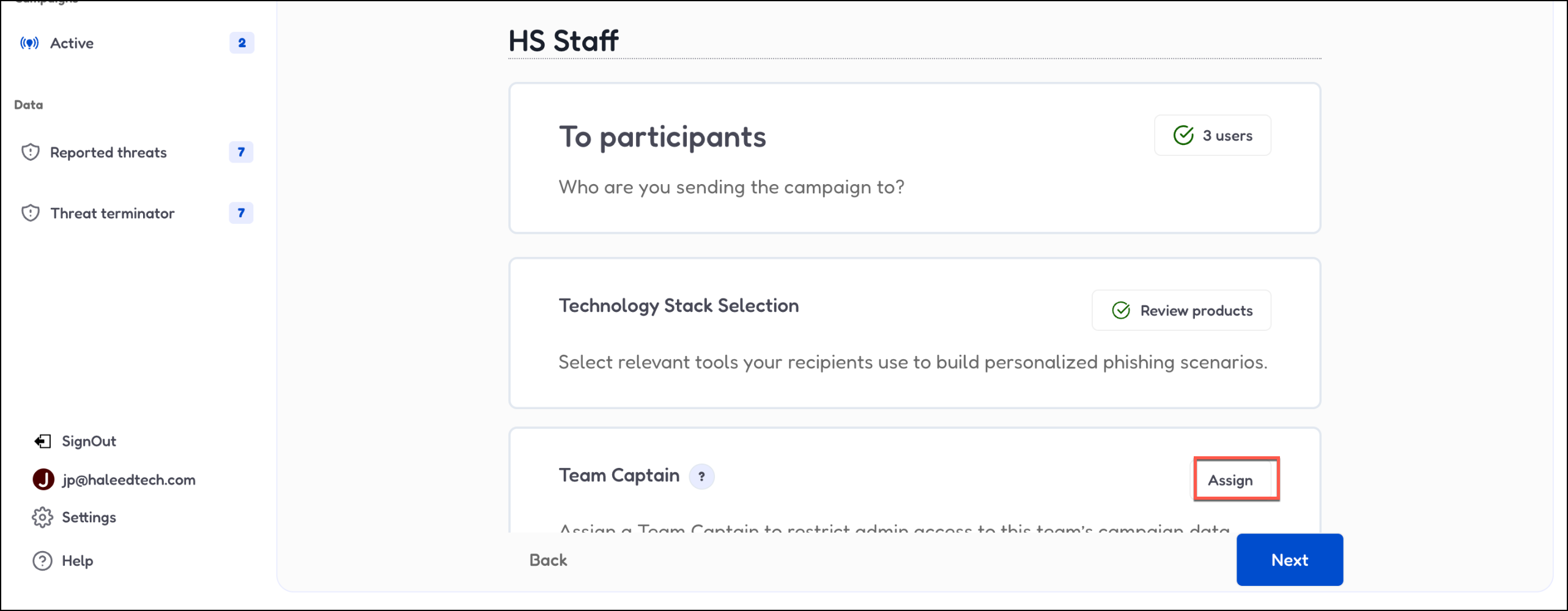 12. Select Review Products to pick which training materials to include in this campaign.