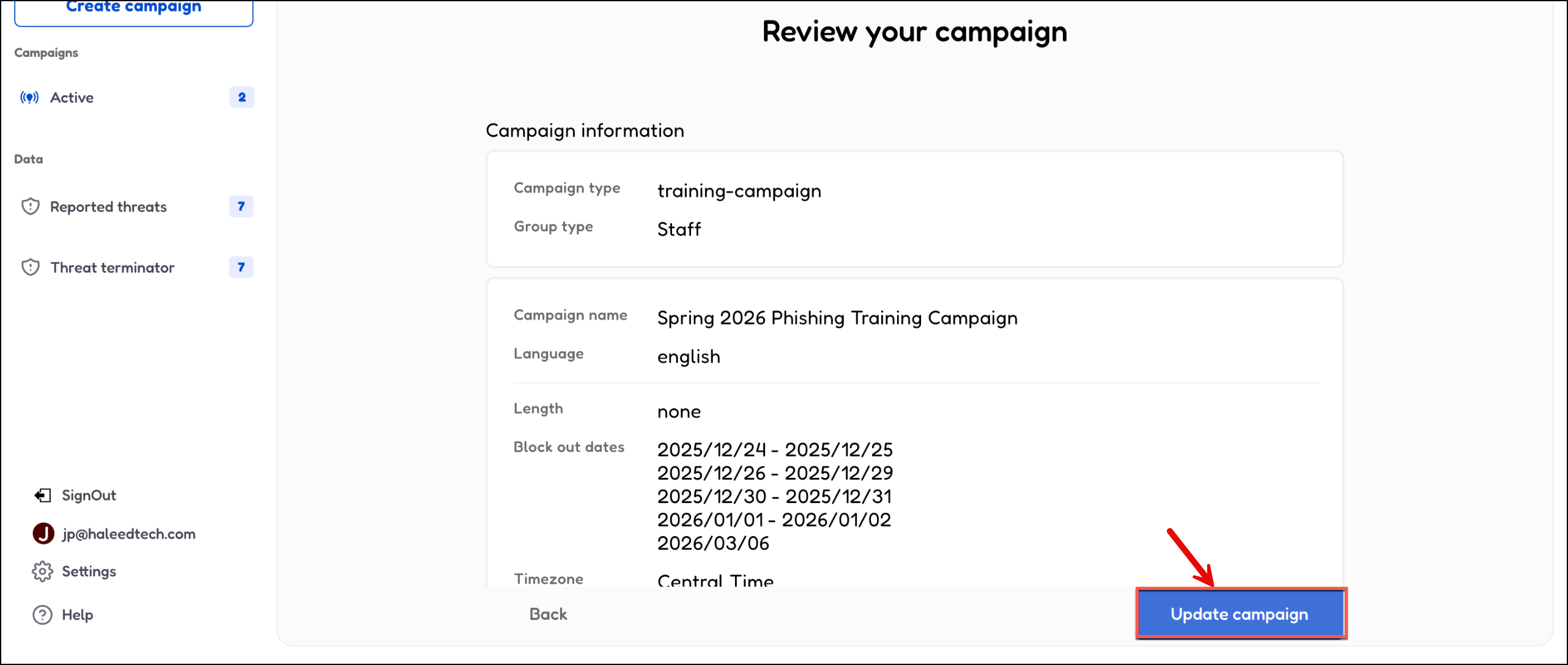 ▶️ Editing a Phishing Training Campaign