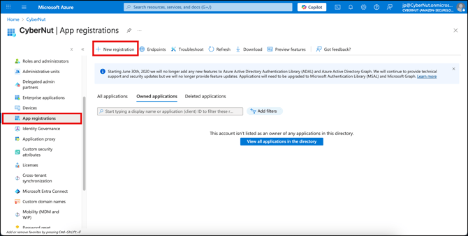 Step 3: Choose New registration and name this registration as 'CyberNut Admin'. Click 'Register' at the bottom when you're finished.