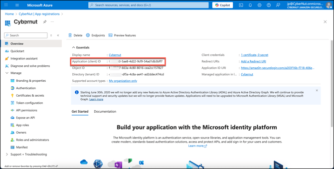Step 4: Please copy the Application (Client) ID and retain this for future reference as you did earlier with the tenant ID.