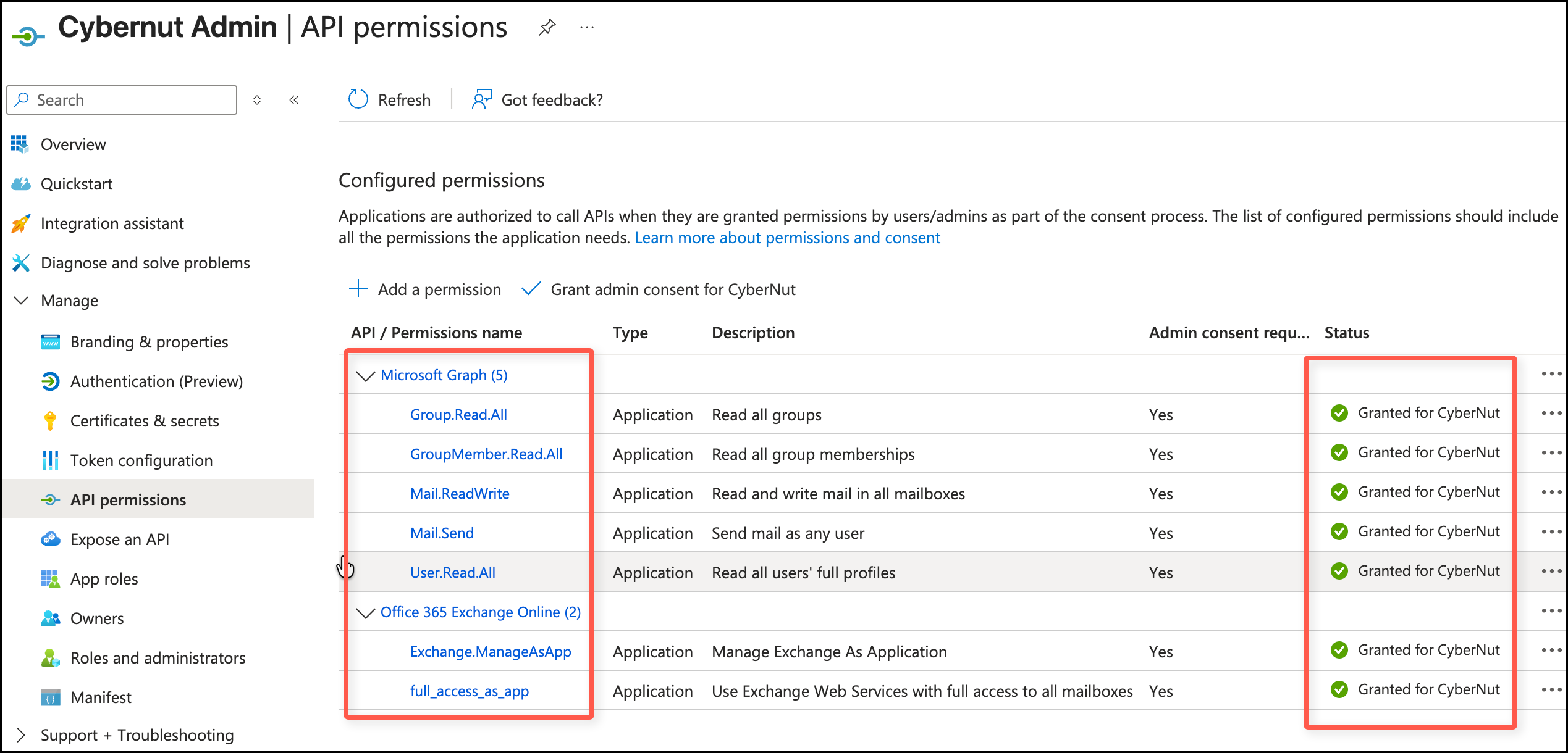 - Verify that you have the following permissions granted. (inc Mail.ReadWrite)