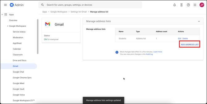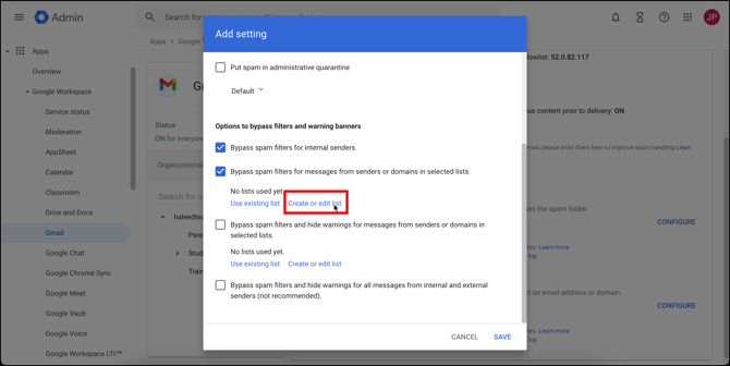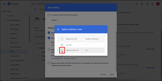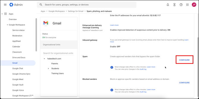 Creating the Allowlist in the Google Admin Console