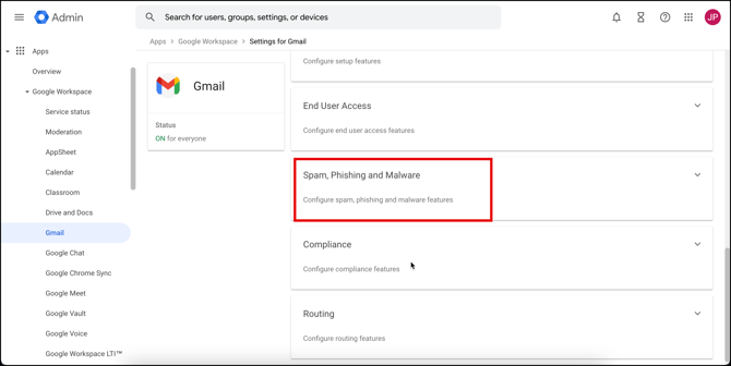 - Scroll down on the right side of your screen and click on Spam, Phishing and Malware.