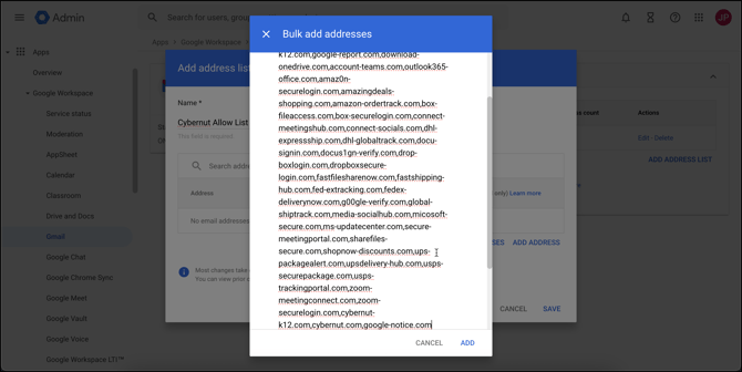 - Paste the values in the CyberNut Allowlist in the text box and click Add.