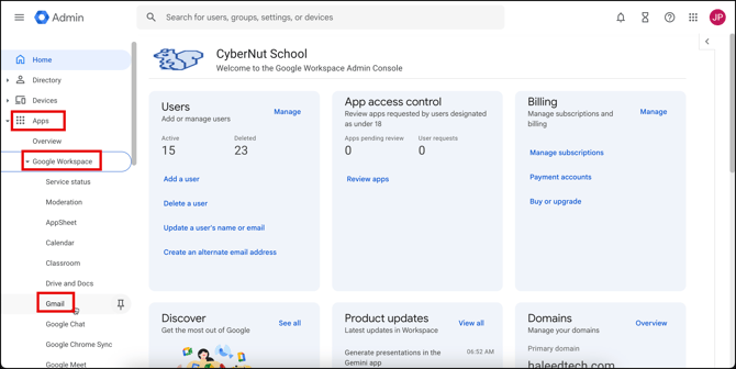 - Go to Apps>Google Workspace>Gmail.