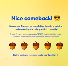 Staff and students can access the Leaderboard by clicking on or reporting an email. After completing the micro-quiz, a link will be provided to view the Leaderboard.