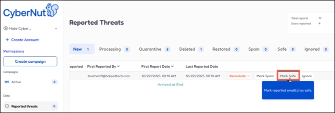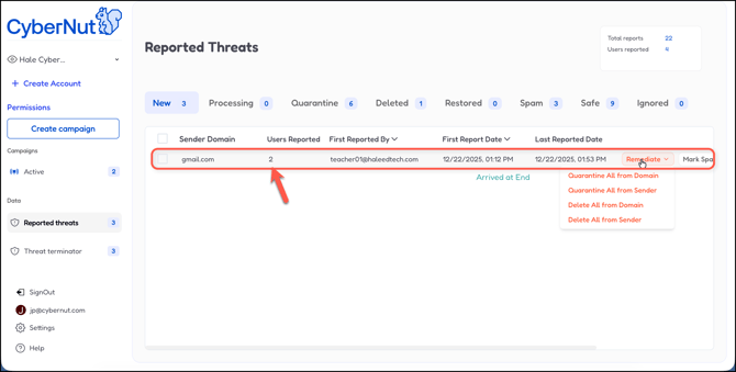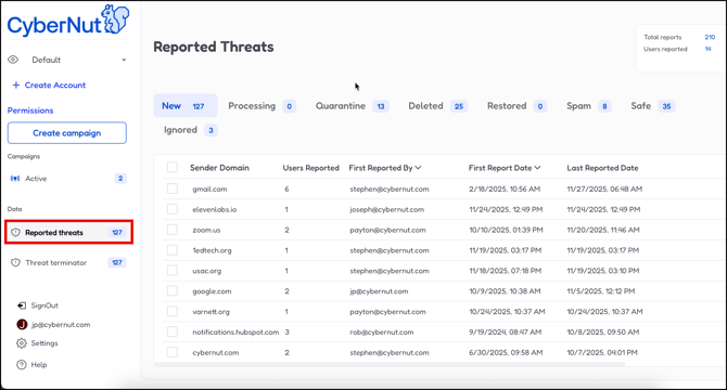 In this article you will learn how to manage Reported Threats in the CyberNut Admin Portal.