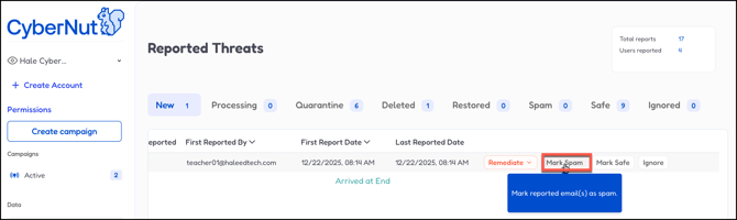 ▶️ Managing Reported Threats in CyberNut
