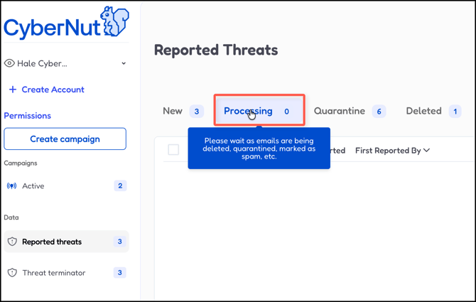 - Processing- Please wait as emails are being detected, quarantined, marked as spam, etc (Processing time depends on the amount of emails but generally will be complete the same day.)