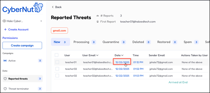- Click New to show newly reported email threats awaiting review. These have not yet been analyzed or categorized..