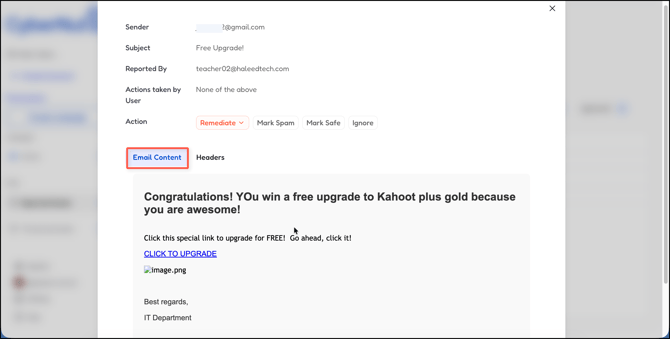 - Delete this Email- Permanently delete this email from the user's inbox. This action cannot be undone.