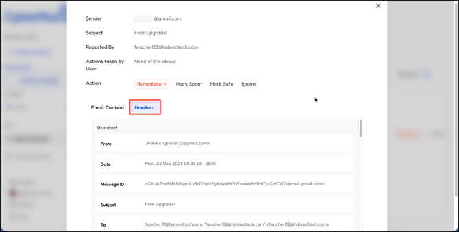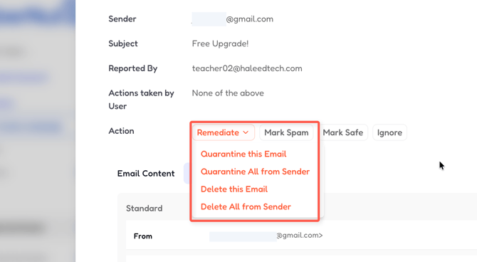 - Quarantine All from Sender- Quarantine all emails from this sender. Emails will be moved to users' Trash and auto-deleted after 30 days.