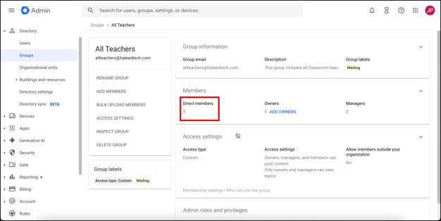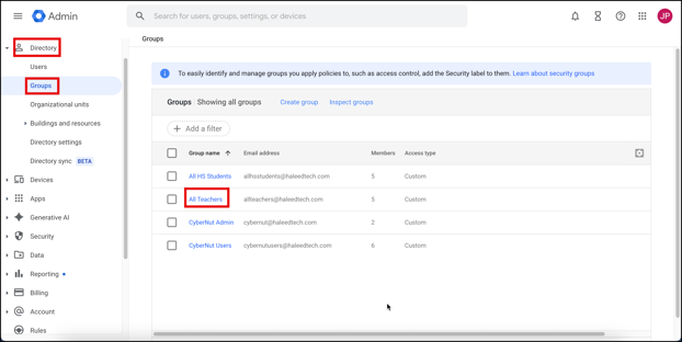 - Log in to the Google Admin Console at http://admin.google.com navigate to Directory>Groups. Then select your group. (ex. All Teachers)