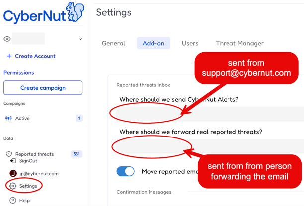 In this article you will learn to add an email forward for real reported threats.