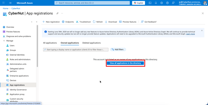 Step 3: Click View all applications in the directory. Locate and click CyberNut Admin.