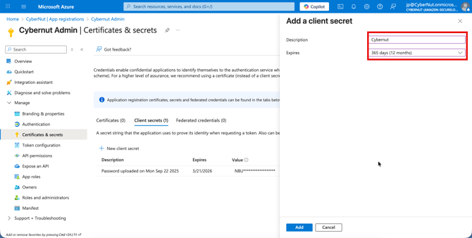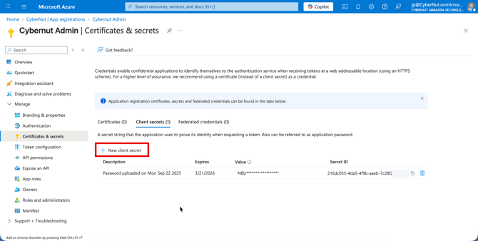 In this article you will learn how to update the CyberNut client secret for Microsoft.
